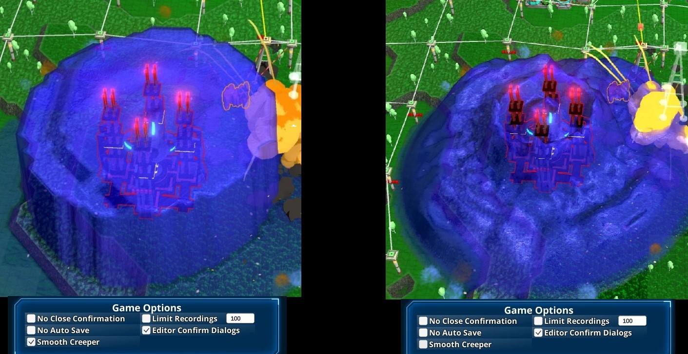 For units like the Air Sac Fabricator which have some form of significant dependence on the Creeper depth around them after activation or are a very large structure, there is an in-game setting that you can disable to display a ludicrously more accurate depiction of the Creeper though it won't look all too nice and be very sharp, hence the setting “Smooth Creeper”. This can enlighten you to how difficult it is to obtain sufficient Creeper depth, saving you the frustration of “it looks submerged why is it not working?!”.