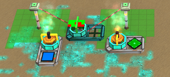 Miners use Resource Terrain to create energy or Bluite packets. Bluite packets are sent to the Factory for conversion into Anti-Creeper (AC). Each Miner operates only on the terrain it covers. Multiple Miners can be on the same patch of resource terrain. When placing them, there is a red/green indicator on the Miner to show how effective the position is. Miners can be rotated to best fit the available terrain.