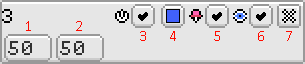 Button 5 sets the field type. When selected, the fields inside this container become Pin type. Pin fields trap creeper in place. When deselected, the fields become Vector type. Vector fields push creeper in a direction, the direction and strength of which can be selected when painting fields with the Field brush.