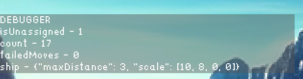 { 'type': 'text', 'pos': [0,24], 'width': 600, 'height': 24, 'name': 'title', 'color': '#fff', 'bgcolor': '#5557', 'text': 'DEBUGGER'},